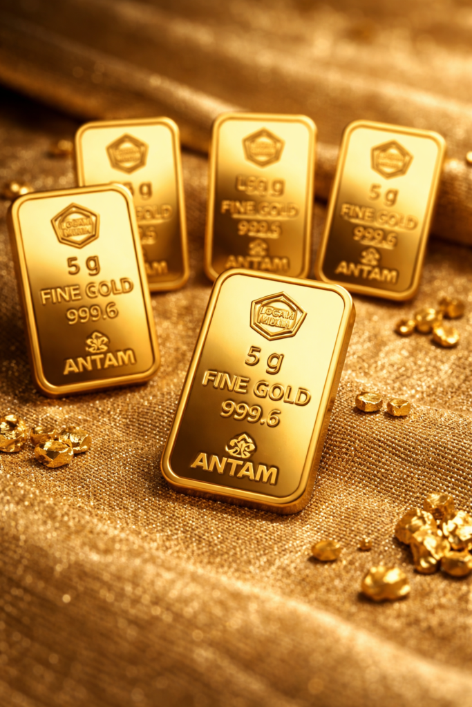 JAKARTA, Mediajembrana.com – Harga emas batangan PT Aneka Tambang Tbk (Antam) mengalami penurunan tajam pada akhir Januari 2026. Setelah sempat berada di level tinggi, harga emas kini terkoreksi signifikan mengikuti pergerakan pasar global.