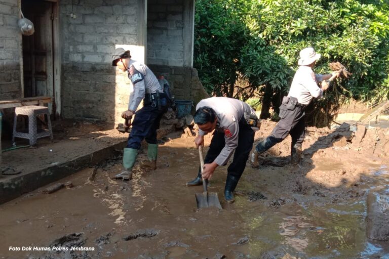 Gotong Royong Polisi-TNI Pulihkan Permukiman Pasca Banjir Pekutatan