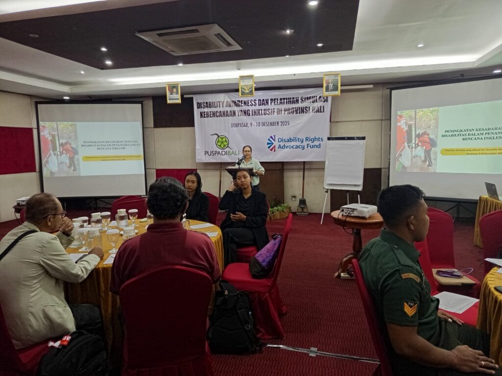 Denpasar, Media Jembrana – Pusat Pemberdayaan Disabilitas Indonesia (PUSPADI) Bali, didukung oleh Disability Rights Advocacy Fund, menggelar pelatihan Disability Awareness dan simulasi evakuasi inklusif pada 9-10 Desember 2025 di Denpasar, Bali.